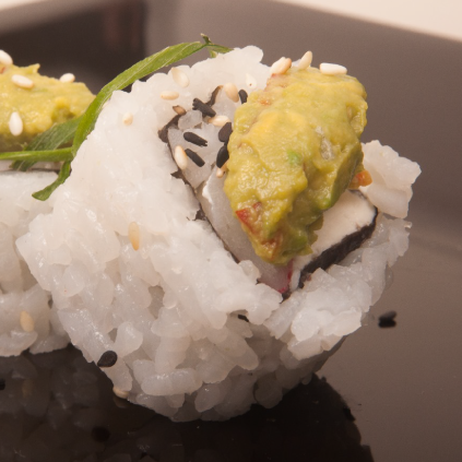 Salmón y phila, coronado con guacamole (Por 8 unidades)